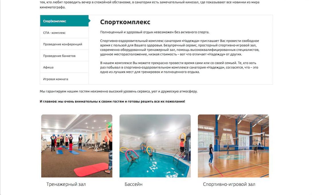 Сайт для санатория «Надежда» ТольяттиАзот